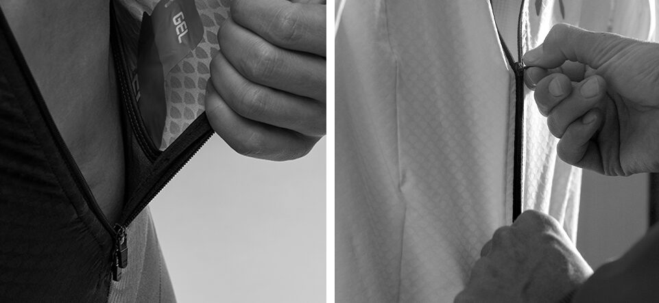 Accesso rapido e intuitivo: grazie alla zip inferiore, gli atleti possono raggiungere i gel con un semplice gesto, senza dover rallentare o compromettere la posizione in gara.